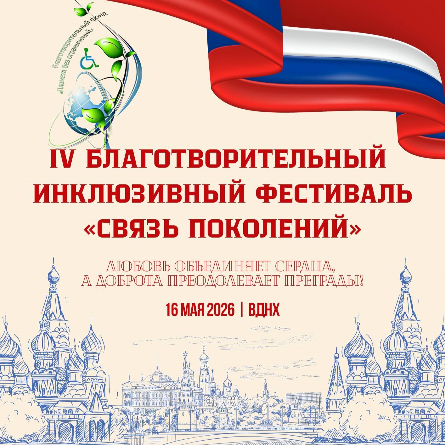 В Москве в четвёртый раз пройдёт благотворительный инклюзивный фестиваль «Связь поколений» 15 Апрель 2026